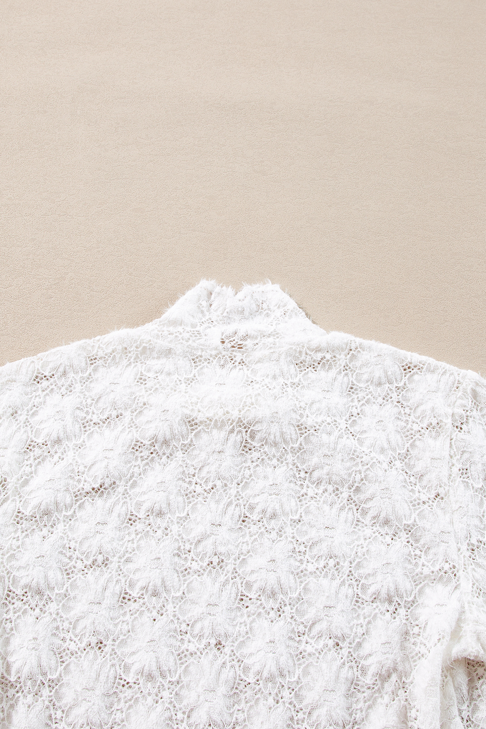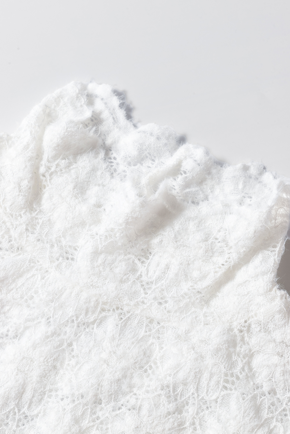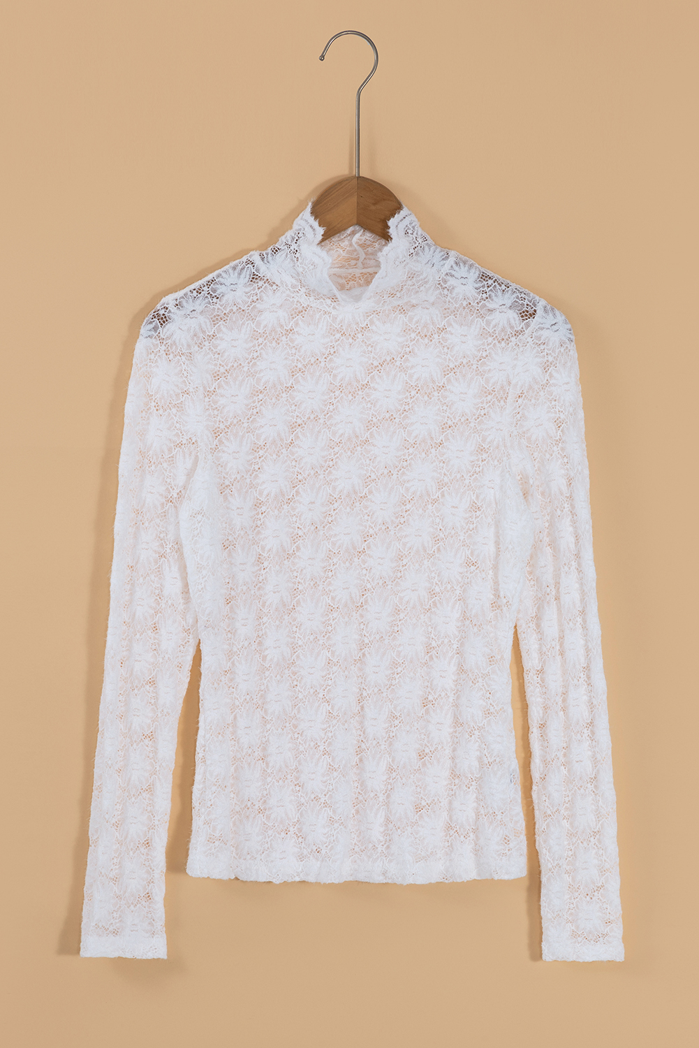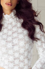 الدانتيل الأزهار البيضاء عالية الرقبة كم طويل الأعلى
