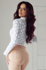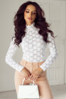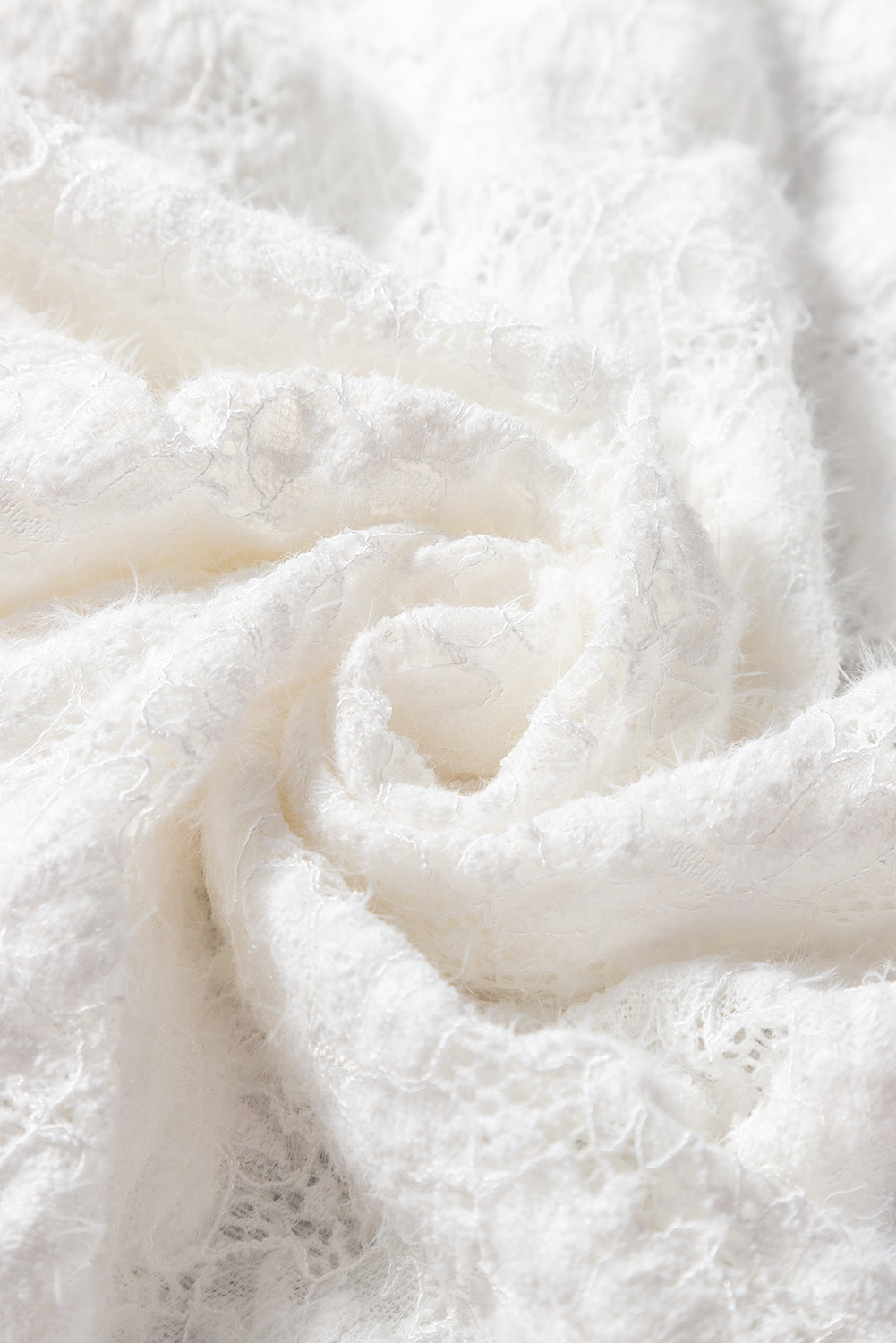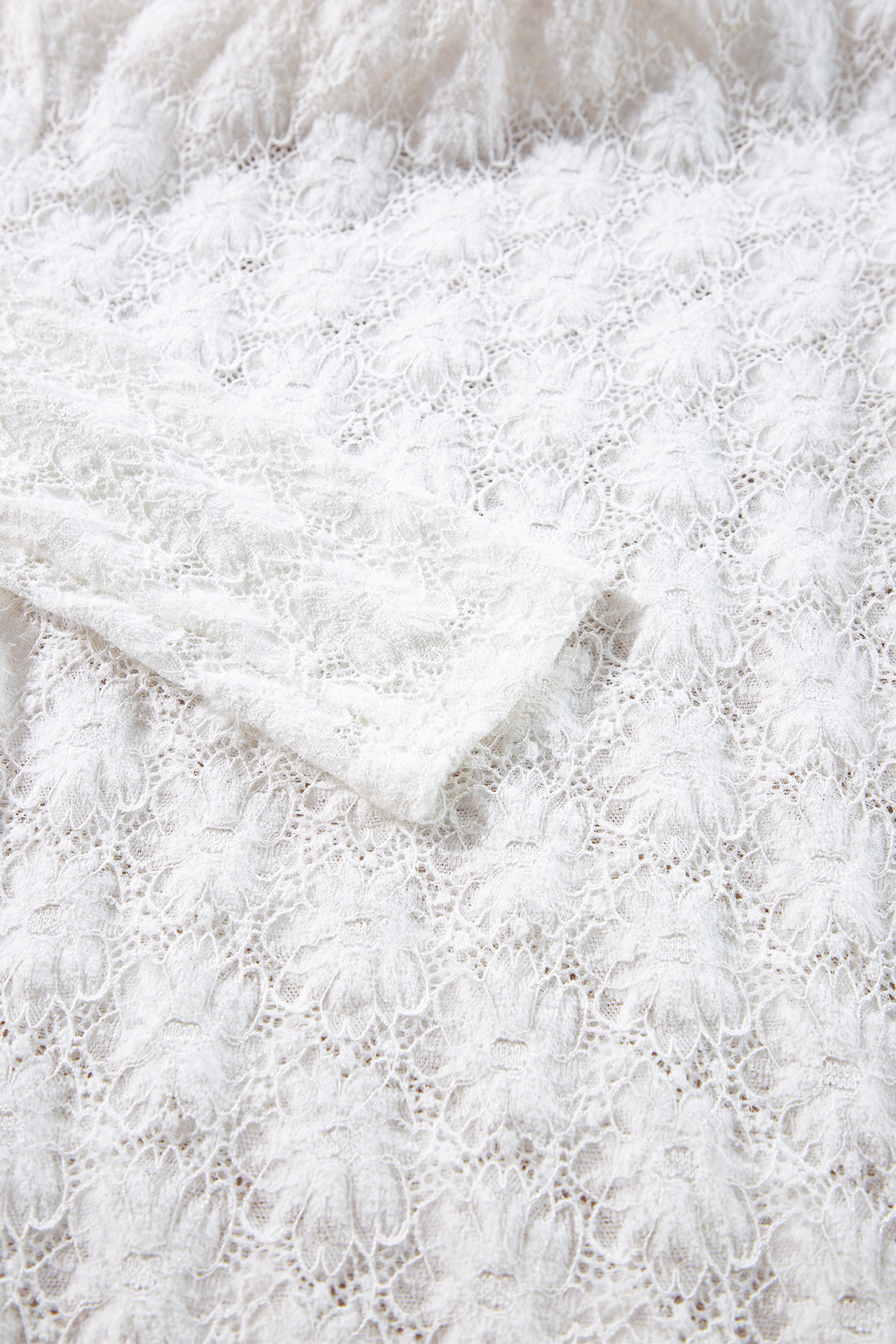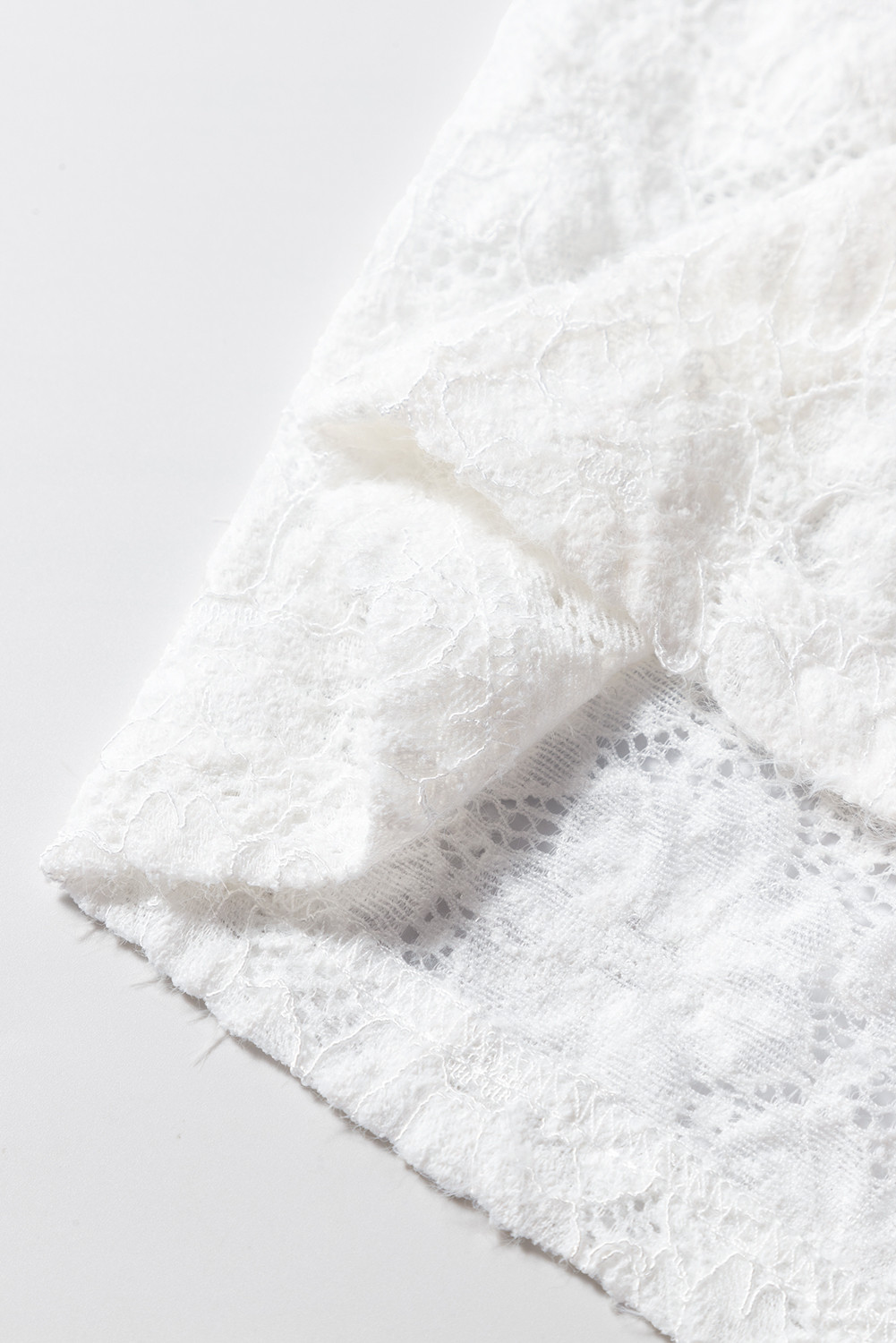 الدانتيل الأزهار البيضاء عالية الرقبة كم طويل الأعلى