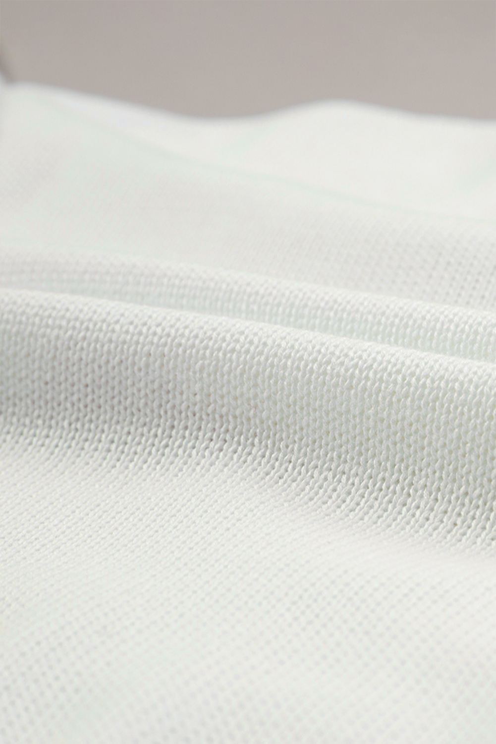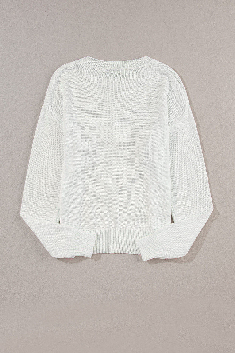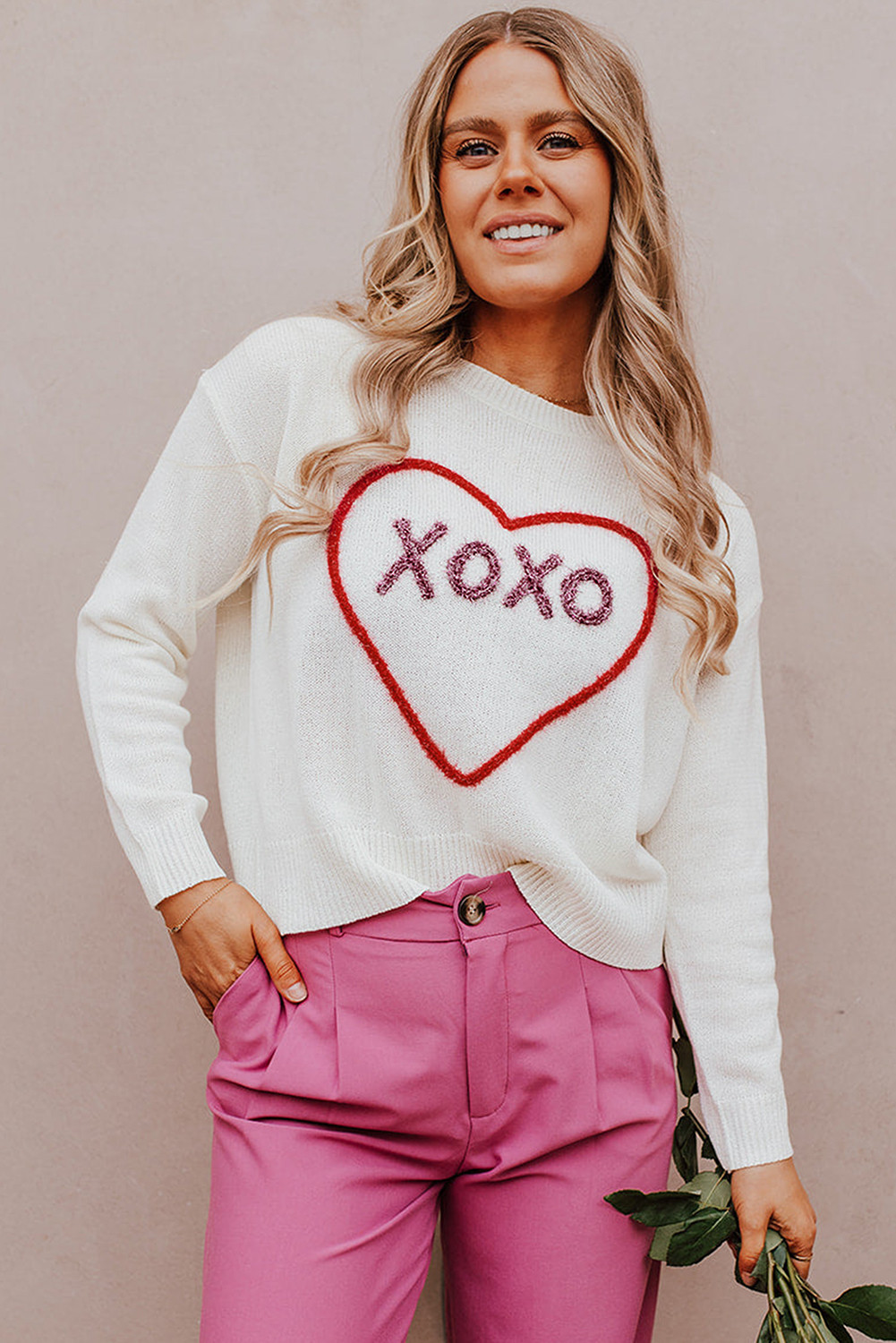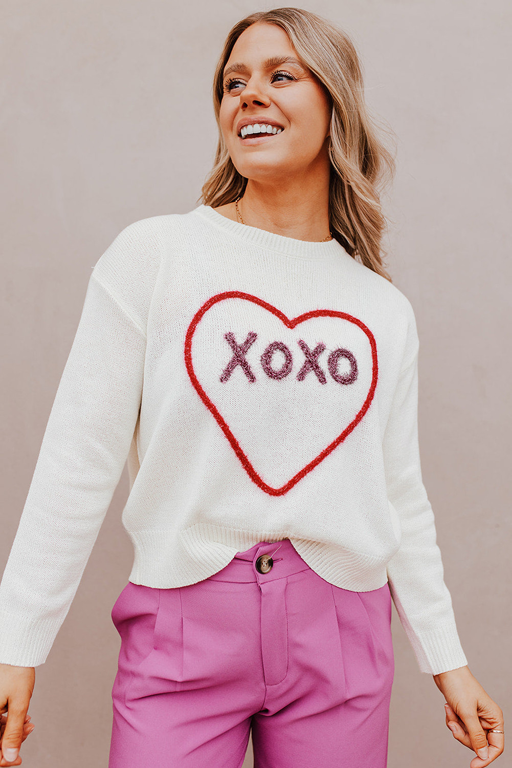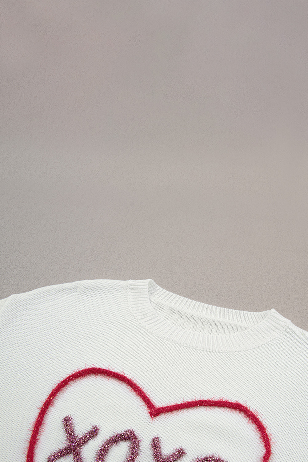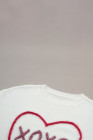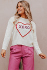سترة بيضاء على شكل قلب XOXO منسوجة بكتف منسدل وضلع